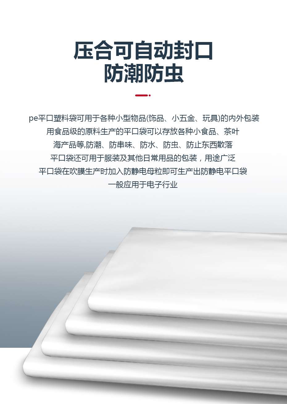 加厚大號pe平口袋(又稱為密實袋、貼骨袋、密封袋、拉鏈袋,龍骨袋,以聚乙烯(LDPE)和高壓線型聚乙烯(LLDPE)通過吹膜成型,熱切機制袋,制成的一種可以重復封口的塑料袋。常見材質有PE\PO\EVA,多層復合拉鏈袋等......